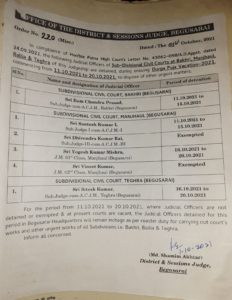 दुर्गा पूजा छुट्टी के अवधि में कौन न्यायिक पदाधिकारी रहेंगे ड्यूटी पर देखें पूरा वेकेशन लिस्ट